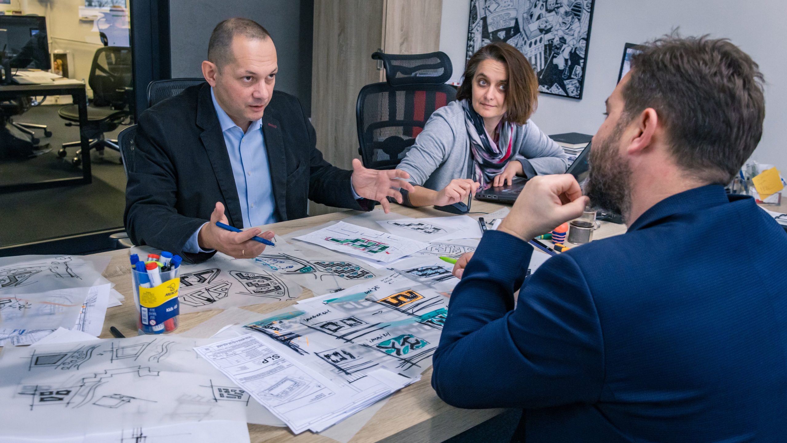 Rysunek pozwala najskuteczniej wyjaśniać i analizować różne warianty rozwijającego się projektu. Pielęgnujemy ten tradycyjny sposób komunikacji, łącząc go ze współczesnymi technikami komputerowymi i wzmacniając nasz proces twórczy.